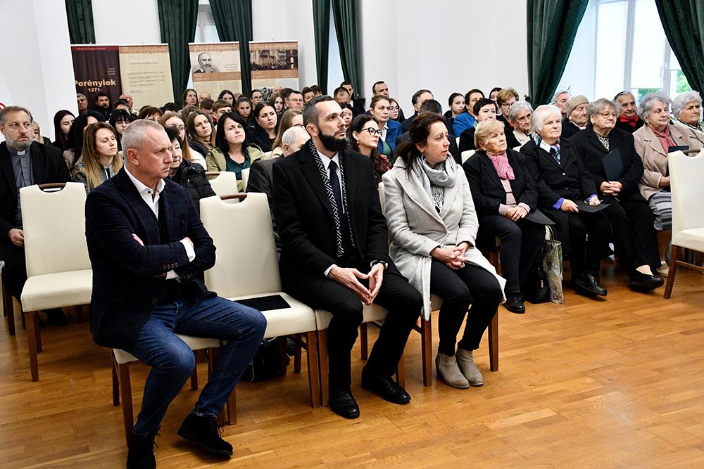 Időközben eleredt az eső, ezért a megemlékezés a kultúrkúria rendezvénytermében folytatódott, ahol elsőként Balogh György beregszászi magyar konzul szólt a jelenlévőkhöz. „Az aradi tizenhárom tábornokra emlékezünk. Olyan férfiakra, akiket a sorsuk arra hívott meg, hogy védjék, amit a Teremtő védeni adott nekik hivatásul, és viseljék, amit a Teremtő elviselni adott nekik áldozatul. […] Ne felejtkezzünk el a mai nap e helynek nevet és emlékező szellemiséget adó Perényi Zsigmondról, Bereg vármegyei főjegyzőről, majd alispánról, országgyűlési képviselőről, Ugocsa megyei főispánról, aki Batthyány Lajos miniszterelnök mellett az 1848–1849-es szabadságharc politikusaként volt vértanú. Az ő személyén keresztül a megtorlás szimbolikusan az új alapokra helyezett törvényhozás főrendiházára sújtott le, mert 1849. május 29-én, mint a felsőház elnöke, ő is aláírta Kossuth Lajos Függetlenségi Nyilatkozatát. Komoly szervezőmunkát felmutatva mindent megtett azért, hogy a törvényhozás a törvényes keretek között működjön, elévülhetetlen érdemei vannak 1848–1849 legitimitásának megőrzésében, hiszen a népképviseleti országgyűlés mindkét háza jóváhagyta a legfontosabb döntéseket. Ezért a szabadságharc bukása után az osztrák hatóságok elfogták, kötél általi halálra ítélték, és 1849. október 24-én kivégezték. Itt, Kárpátalján különösen nem felejthető az ő emléke” – jelentette ki a diplomata, hangsúlyozva: az aradi vértanúk és „a többi ismert és ismeretlen áldozat, akiket a Haynau-féle megtorlás kivégzett, bebörtönzött és meghurcolt, haláluk pillanatában a magyar szabadságharc mártírjaivá váltak; nemzetünk számára ők hősök, igaz és bátor férfiak, apák és szerető hitvesek, akik előtt megrendülten, hálás szívvel hajtunk fejet.”