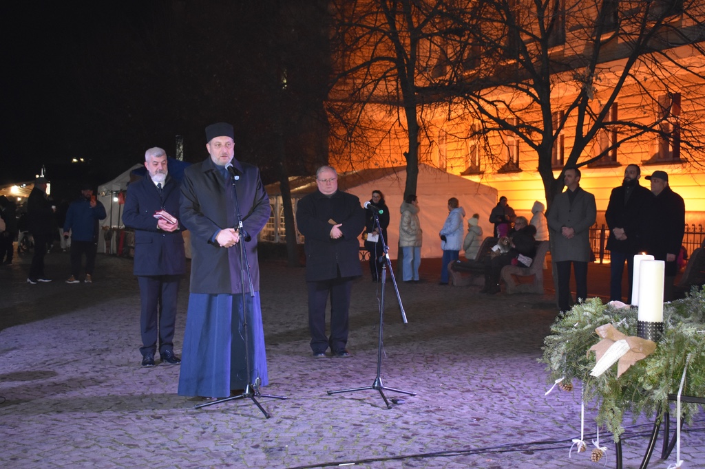 A történelmi egyházak képviselői, Molnár János római katolikus esperes-plébános, Marosi István görögkatolikus pap, valamint Taracközi Ferenc református lelkipásztor a Krisztus eljövetelére váró időszak fontosságát emelték ki köszöntőjükben. Kihangsúlyozták, az adventi gyertyák fénye nemcsak a koszorút, hanem a szívünket is bevilágítja. Ezekben a nehéz időkben különösen fontos, hogy a hit, a remény, az összetartozás és a szeretet lángja ne aludjon ki bennünk. Végül Isten áldását kérték a rendezvényre, a megjelentekre.