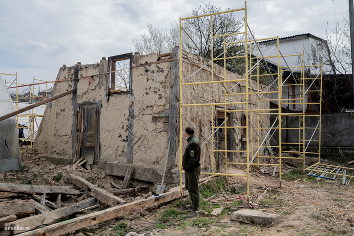 Ő volt Misa, a kárpátaljai légvédelem parancsnoka. A mindennapokban az eget kémleli az orosz drónok és rakéták után, de az elmúlt télen ő volt az is, aki felmászott az épület ropogó eternittetejére, és lapáttal takarította le róla a havat, nehogy a szerkezet maga alá roskadjon. Mint később kiderült, házi csilit készít, és rendszeresen benéz a bontásra.