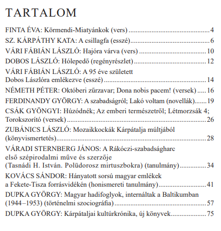 A Magyar Írószövetség Kárpátaljai Írócsoportjának folyóirata,